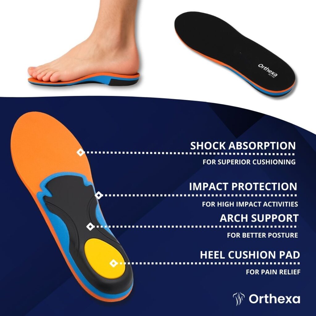 Your feet are your foundation, and neglecting their care can lead to discomfort, fatigue, and even injuries. With Orthexa Active sport insoles, you get: