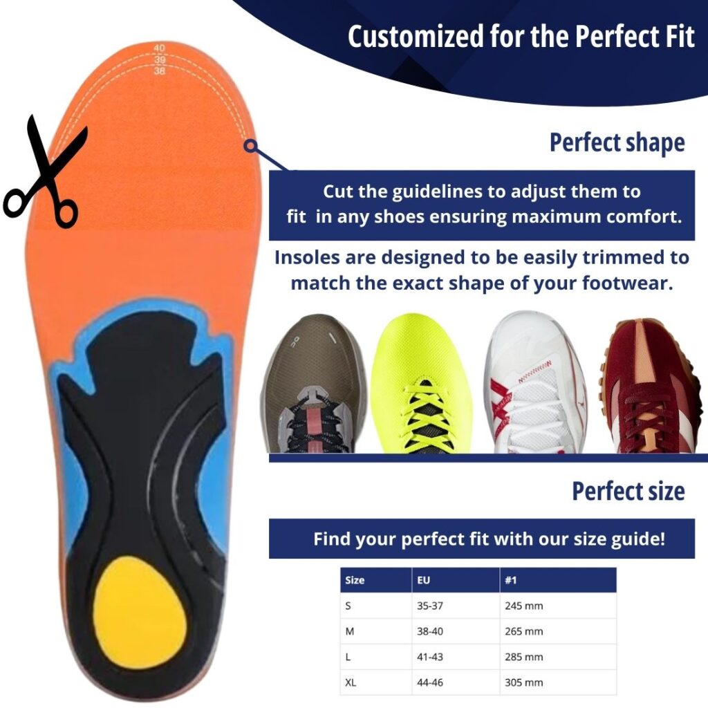 With simple cutting guidelines, you can adjust them to fit perfectly into your shoes, ensuring maximum comfort and support.