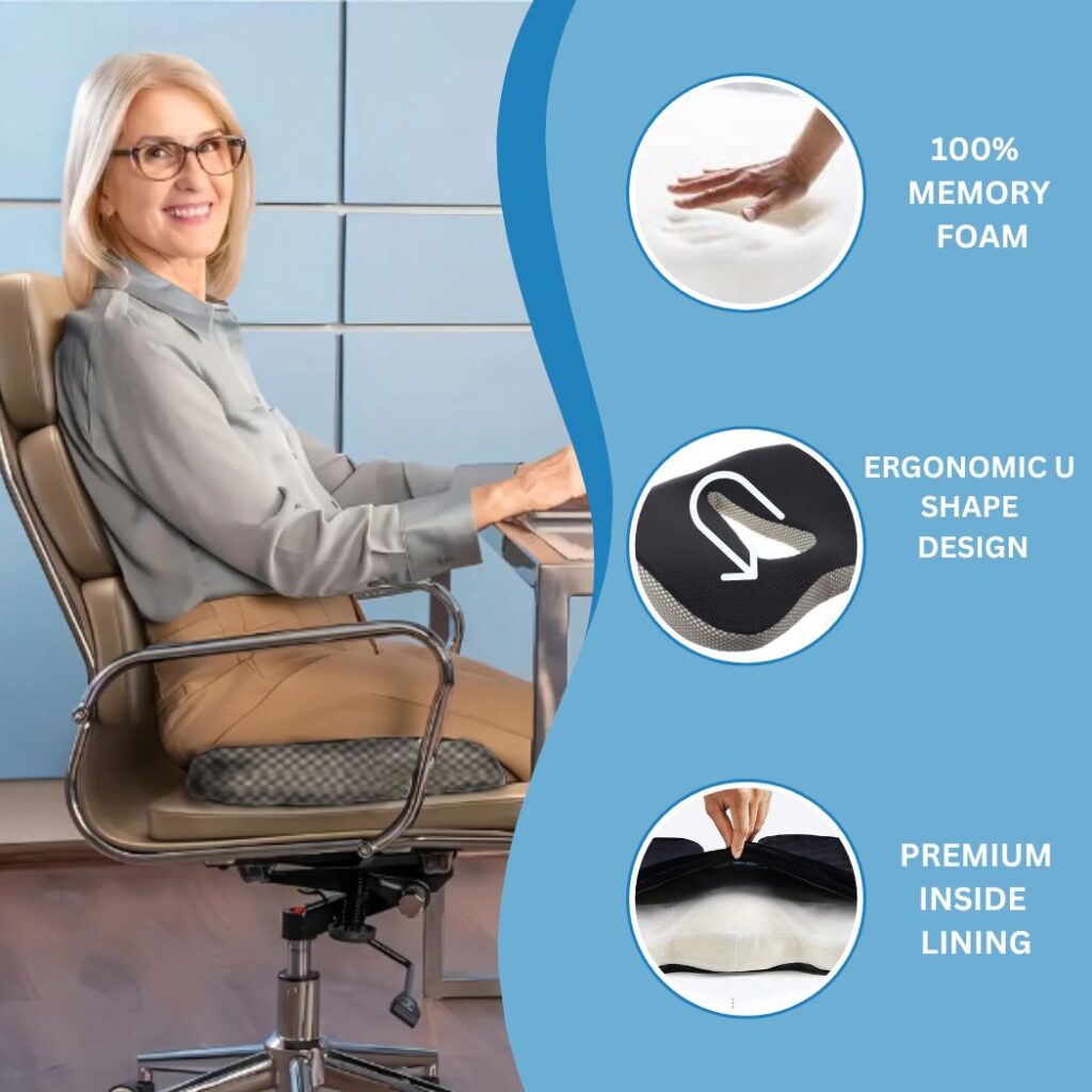 It promotes better posture by aligning your back naturally while sitting. Whether you’re working, driving, or relaxing at home, this cushion helps minimize discomfort and supports spinal health throughout the day.