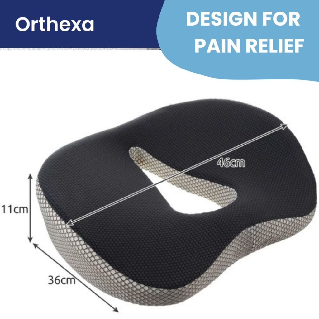 Orthopedic sitting cushion ComfortSit is specifically designed to reduce pressure on sensitive areas like the tailbone, hips, and lower spine.