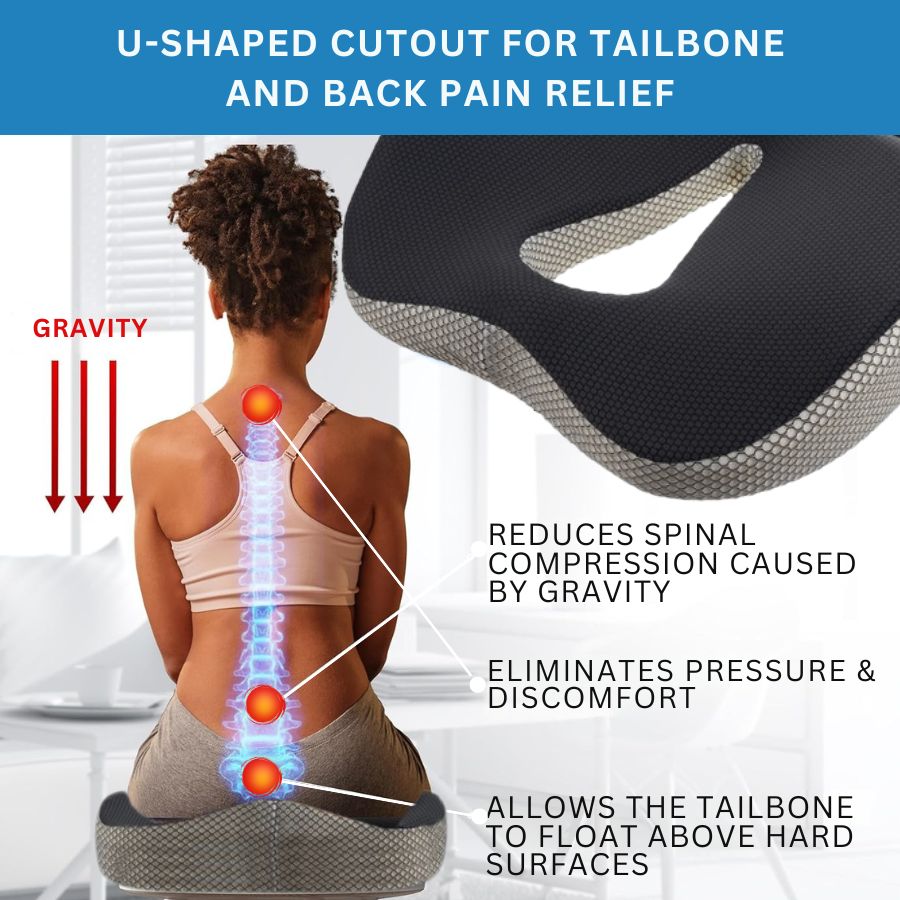 - Reduces back and tailbone pain through even weight distribution